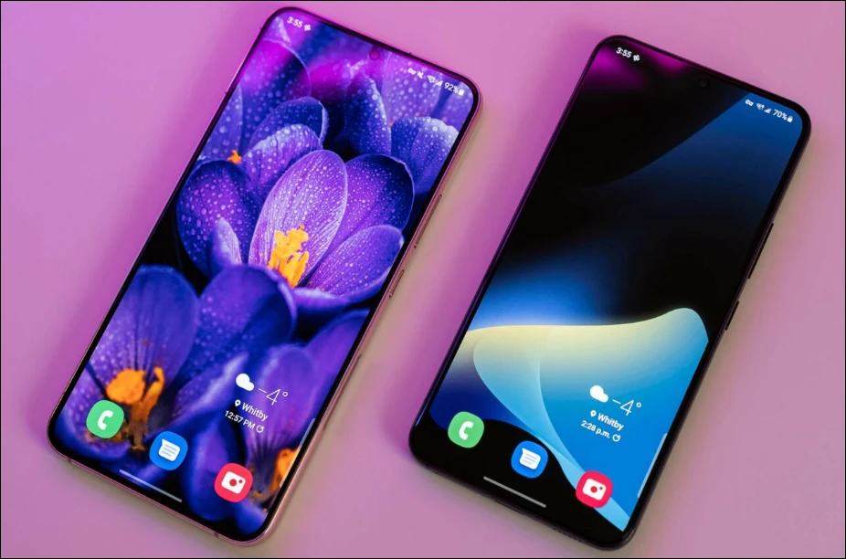 갤럭시 S22의 디자인은 전작과 크게 다르지 않습니다. 다만 S22(6.1인치)와 S22 플러스(6.6인치) 디스플레이는 S21에 비해 다소 작아졌습니다. 이는 현재 S23 에서도 동일하게 유지되고 있죠.
