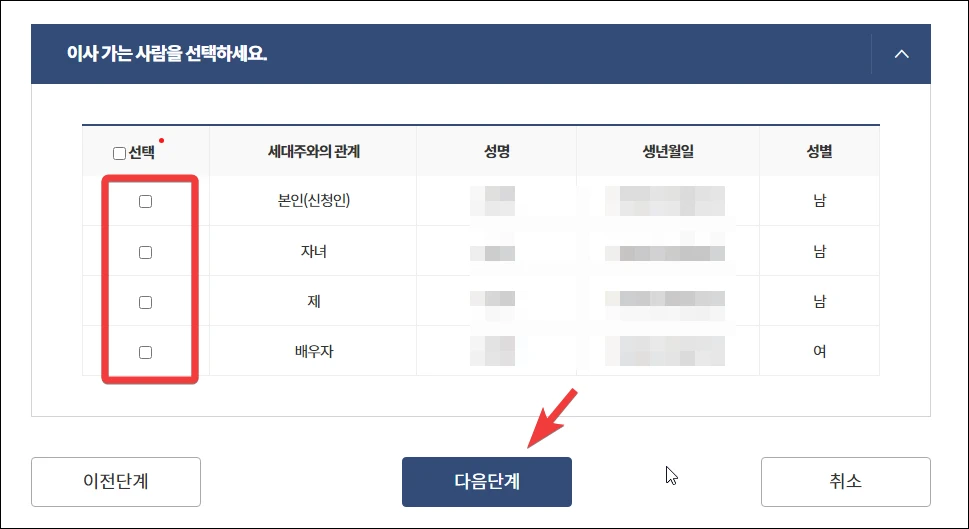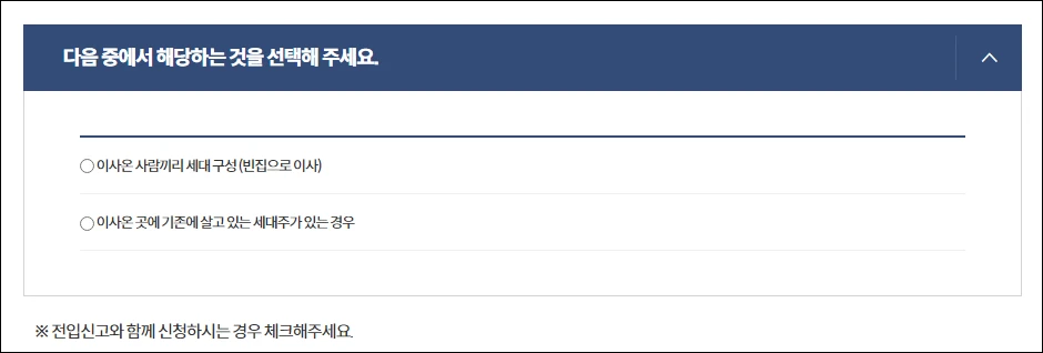 참고로 세대원 전체가 이사가지 않는데 세대주를 선택했다면, 남아 있는 세대원 중 새로운 세대주를 정해야 합니다.