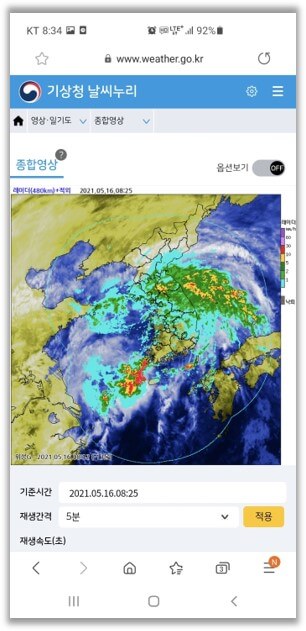 이렇게 위성과 레이더 영상이 혼합된 종합영상이 조회됩니다.