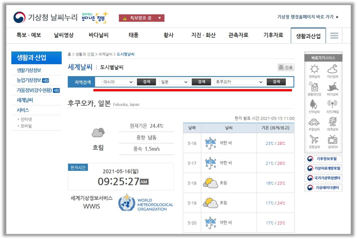 1. 기상청 날씨누리 동네예보